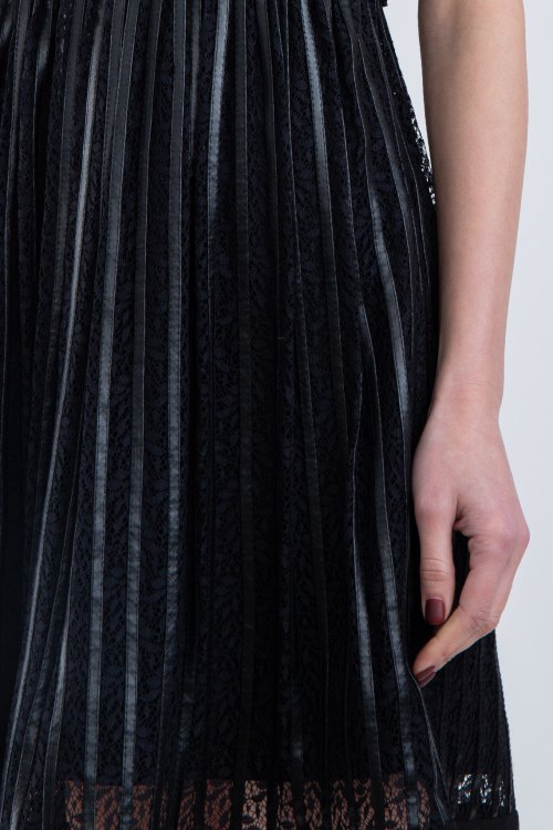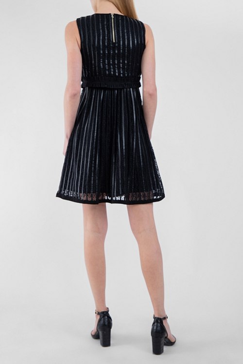 Женское черное платье от Pinko (Пинко). Короткая длина, круглый вырез горловины, на спине застежка -молния, приталенный силуэт, расклешенная юбка, ровный подол.