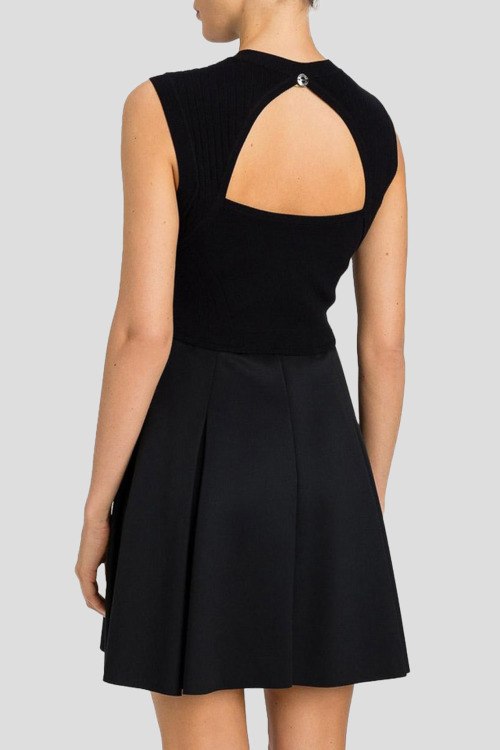 Детали: Женское черное платье от TWINSET (Твинсет). Модель без рукавов, трикотажный верх, круглый вырез горловины, вырез на спине, короткая длина