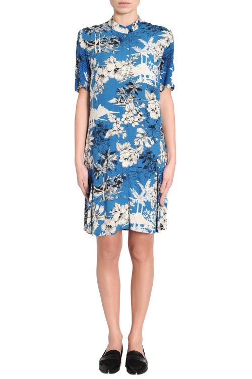 Детали: Платье полуприлегающего силуэта, воротник стойка, застежка на кнопках