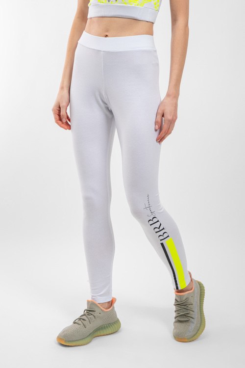 Женский белый хлопковый костюм от Barbara Alvisi (Барбара Алвиси). Топ: принт спереди и сзади, круглый вырез горловины, укороченная длина. Лосины: эластичный пояс, принт с логотипом, полная длина. Замеры для размера M топа: Длина: 37 см, ширина по груди: 34 см. Замеры лосин: длина 93,5 см, ширина по поясу 34,5 см (резинка), ширина по бёдрам: 40 см, высота сидения: 31 см, ширин штанины: 27 см.