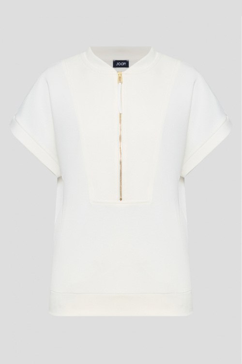 Детали: Женский белый прогулочный костюм от Joop! (Йооп!). Джемпер: воротник-стойка, застежка-молния, короткий рукав, классическая длина. Длина рукава: короткий, для размера 36 - 20 см, обхват груди: для размера 36 - 106 см, обхват талии: для размера 36 - 94 см, длина изделия по среднему шву спинки от горловины: для размера 36 - 56 см. Брюки: эластичный пояс на завязках, боковые карманы, полная длина. Обхват пояса: для размера 36 - 76 см, обхват бедер: для размера 36 - 100 см, длина штанины: для размера 36 - 91 см, длина по шаговому шву: для размера 36 - 64 см