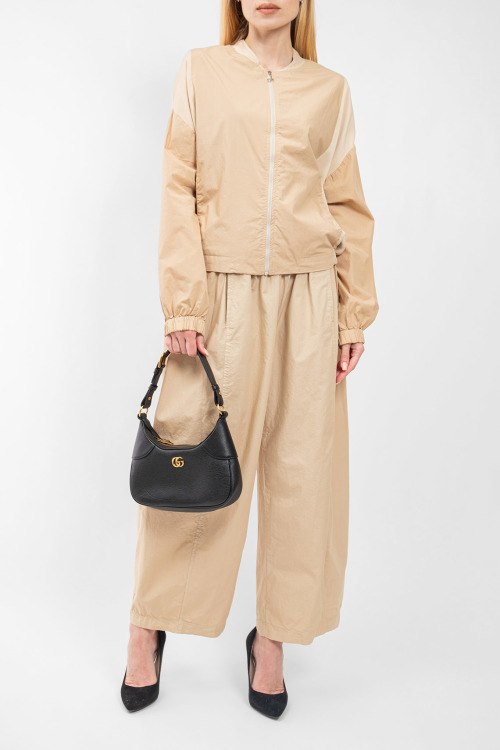 Женский бежевый хлопковый прогулочный костюм от Deha (Деха). Кофта: воротник-стойка, боковые карманы, застежка-молния, манжеты на резинке, классическая длина. Брюки: эластичный пояс на завязках, боковые карманы, широкий крой, полная длина.