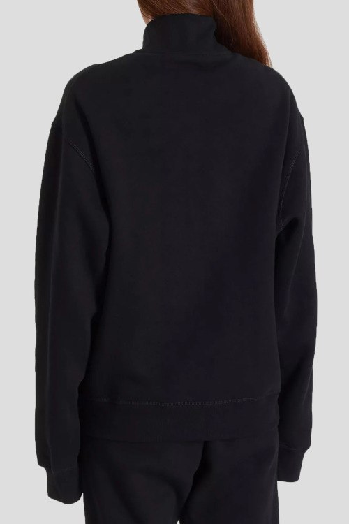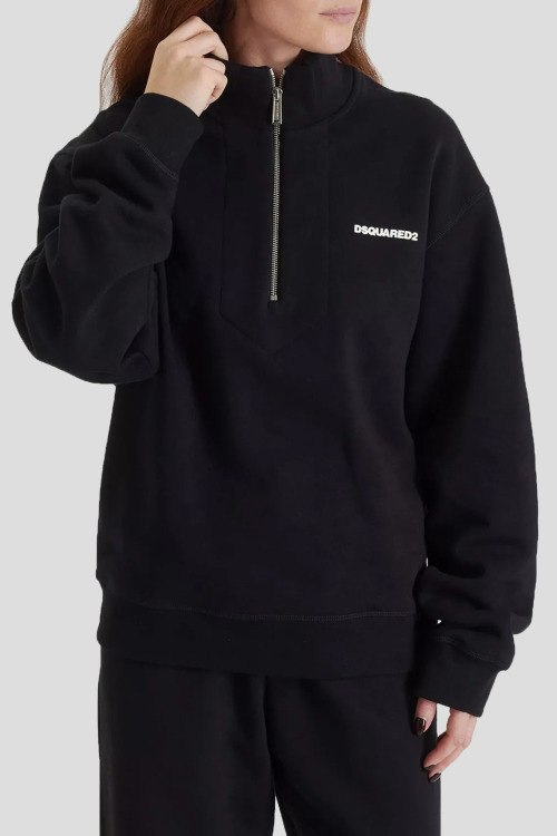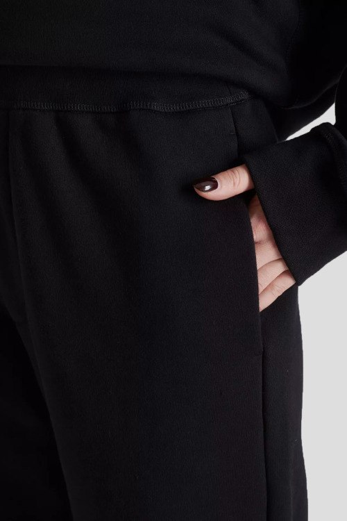Детали: Женский черный хлопковый прогулочный костюм от Dsquared2 (Дискваред). Реглан: логотип на груди, воротник-стойка с застежкой на молнию, классическая длина, трикотажные манжеты и нижний край. Брюки: эластичный пояс, боковые карманы, прямой крой, полная длина. Размер вещи на модели: M