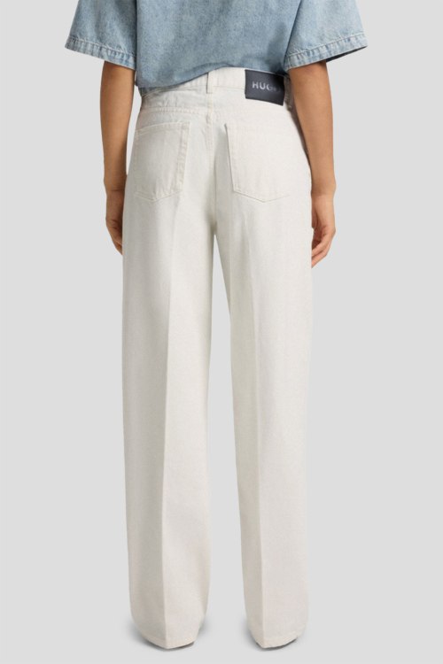 Детали: Женские белые джинсы Gisanna_2 от Hugo by Hugo Boss (Хуго бай Хуго Босс). Дизайн со стрелками, пяти-карманная модель, пояс с петлями для ремня, нашивка с логотипом сзади на поясе, прямой крой, полная длина