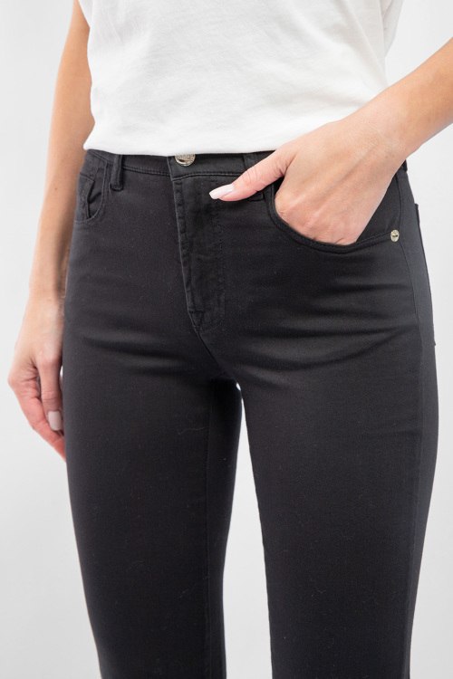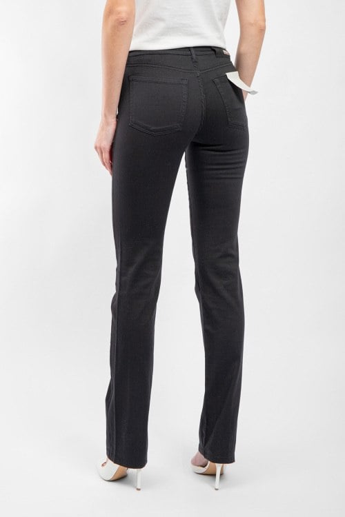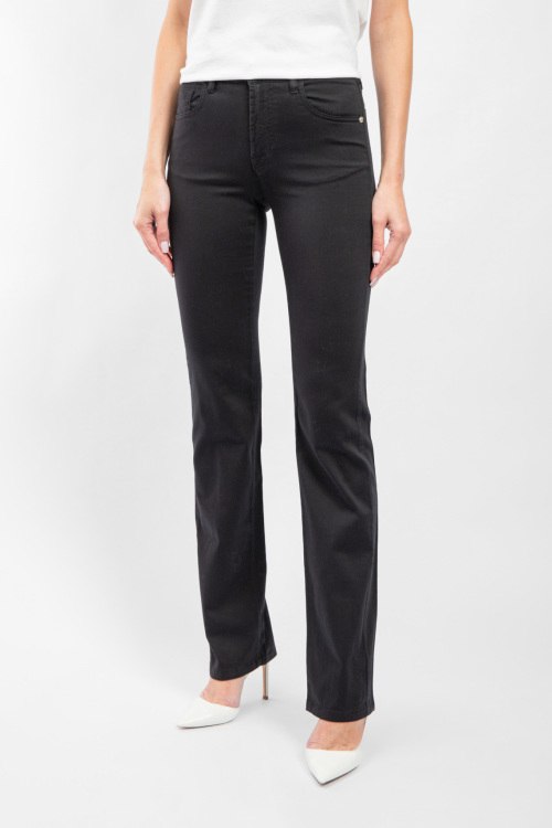 Детали: Женские черные прямые джинсы от Armani Collezioni (Армани Коллезиони). Пяти-карманная модель, пояс с петлями для ремня, нашивка с логотипом сзади на поясе, полная длина