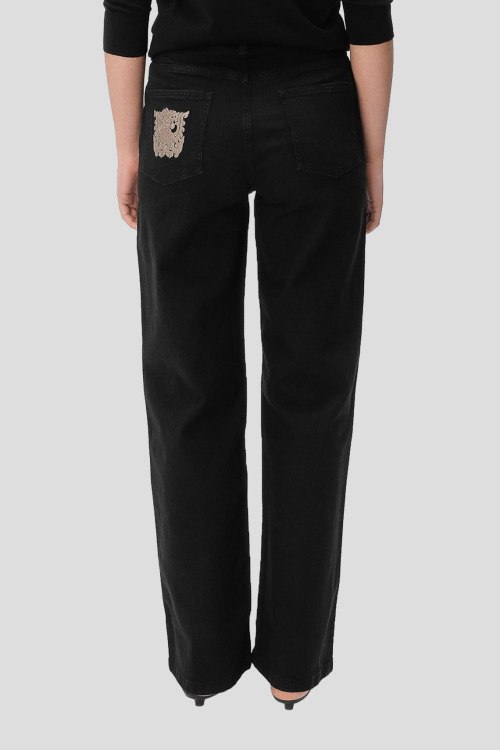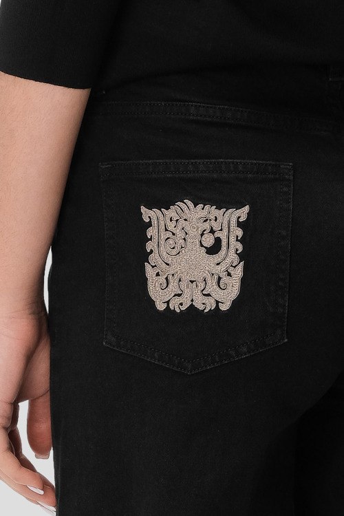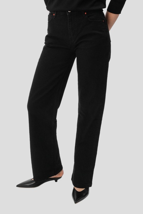 Детали: Женские черные джинсы от Hugo Boss (Хуго Босс). Пяти-карманная модель, пояс с петлями для ремня, нашивка с логотипом на заднем кармане, прямой крой, полная длина