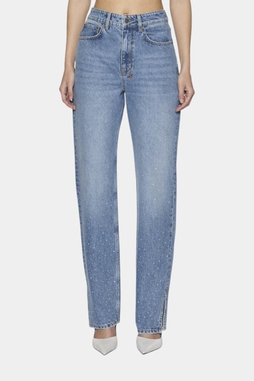 Детали: Женские голубые джинсы Playback Krystal Komet от Ksubi (Ксуби). Декор кристаллами, пяти-карманная модель, пояс с петлями для ремня, нашивка с логотипом сзади на поясе, разрезы по бокам, полная длина