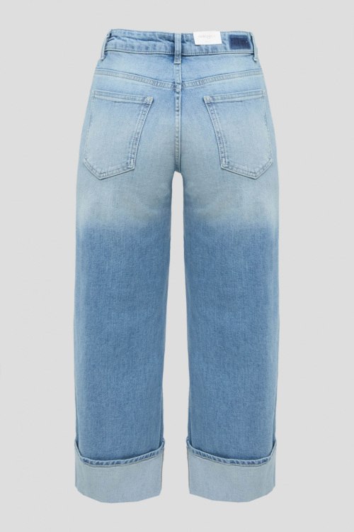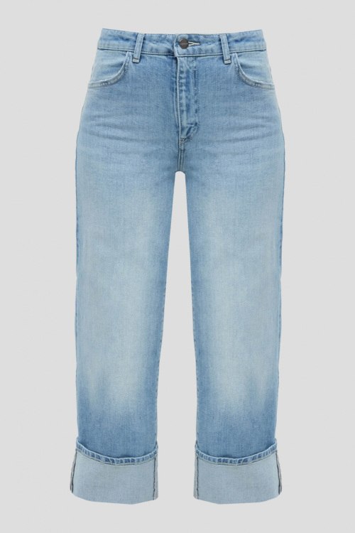 Детали: Женские голубые джинсы от Rich & Royal (Рич энд Роял). Пяти-карманная модель, пояс с петлями для ремня, нашивка с логотипом сзади на поясе, прямой фасон, низ с отворотом. Обхват пояса: для размера 27 - 72 см, обхват бедер: для размера 27 - 96 см, длина штанины: для размера 27 - 92 см, длина по шаговому шву: для размера 27 - 66,5 см