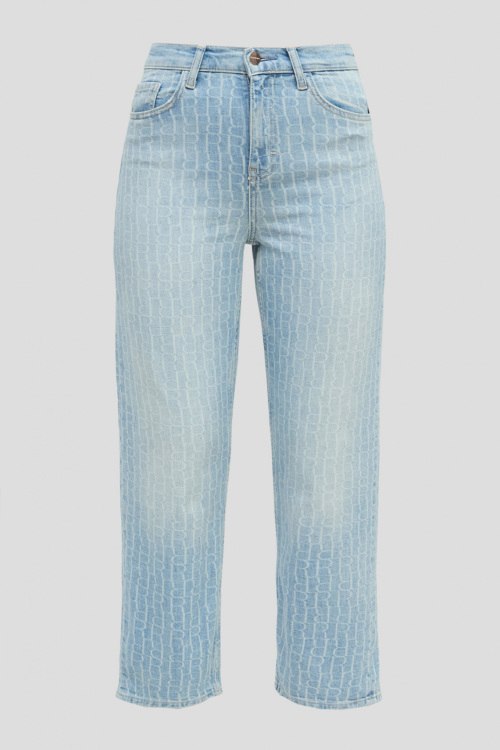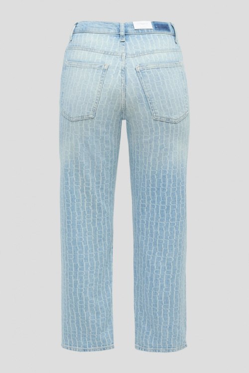 Детали: Женские голубые джинсы от Rich & Royal (Рич энд Роял). Пяти-карманная модель, монограмма по всей поверхности, пояс с петлями для ремня, нашивка с логотипом сзади на поясе, прямой фасон, полная длина. Обхват пояса: для размера 26 - 68 см, обхват бедер: для размера 26 - 90 см, длина штанины: для размера 26 - 95 см, длина по шаговому шву: для размера 26 - 68 см