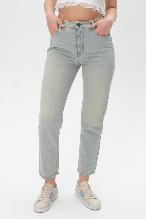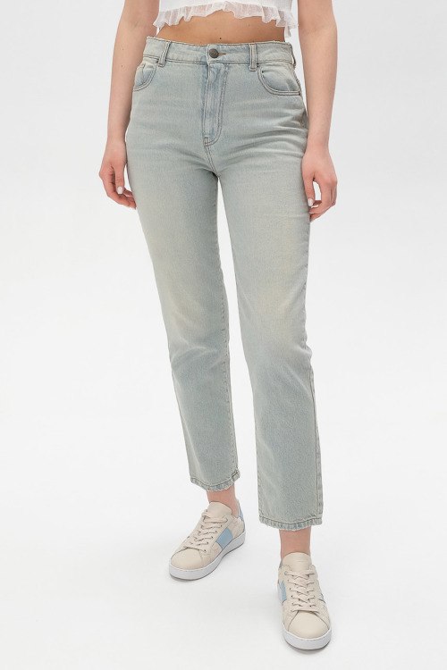Женские голубые джинсы от TWINSET (Твинсет). Пяти-карманная модель, пояс с петлями для ремня, нашивка с логотипом сзади на поясе, укороченная длина