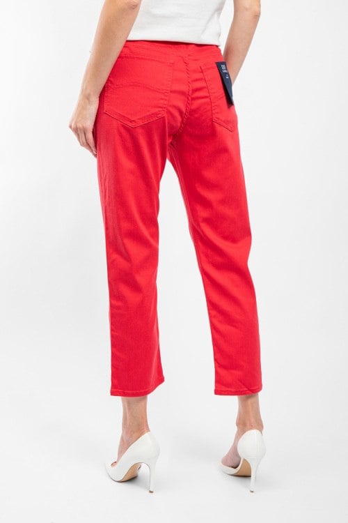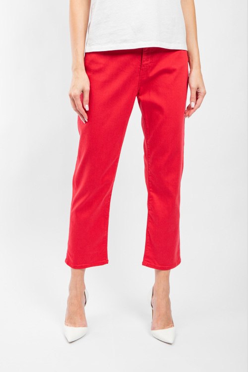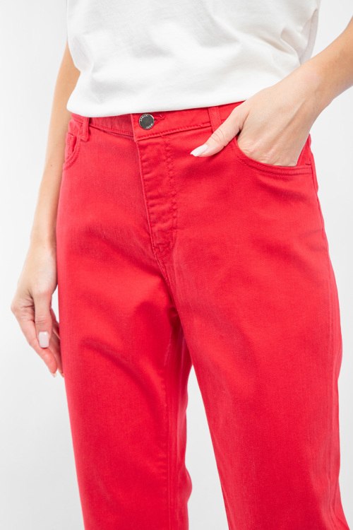 Женские красные укороченные джинсы от Armani Jeans (Армани Джинс). Пяти-карманная модель, пояс с петлями для ремня, прямой крой, укороченная длина.