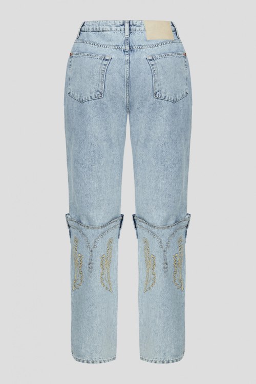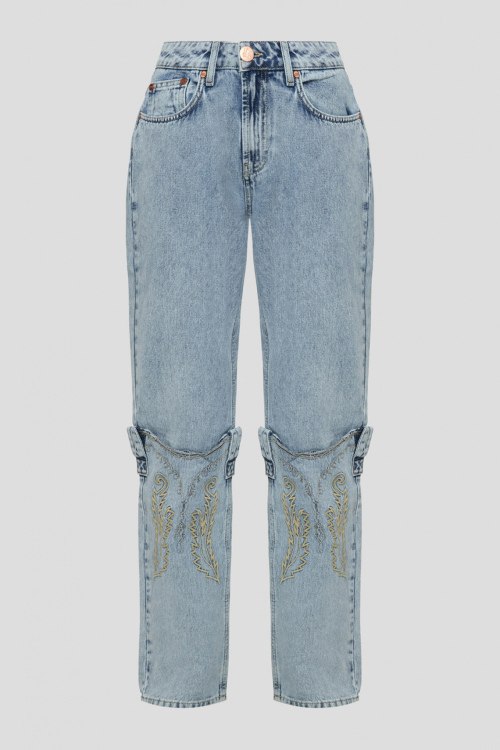 Детали: Женские голубые джинсы из хлопка от One Teaspoon (Ван Тиспун). Классическая длина, высокая посадка, застежка на молнию и пуговицу, пять карманов, петли в поясе для ремня. патч-лого, декорирована модель вышивкой. Измерения: обхват пояса: для размера 25 - 68 см, обхват бедер: для размера 25 - 106 см, длина штанины: для размера 25 - 112 см, длина по шаговому шву: для размера 25 - 85 см