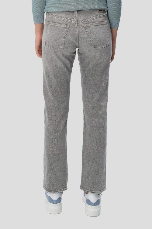 Детали: Женские серые прямые джинсы Classic от Hugo Boss (Хуго Босс). Пяти-карманная модель, пояс с петлями для ремня, нашивка с логотипом сзади на поясе, прямой крой, полная длина