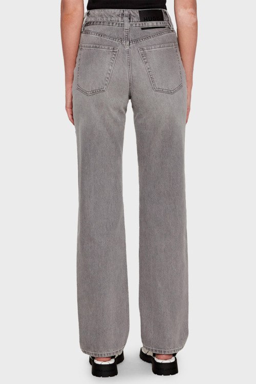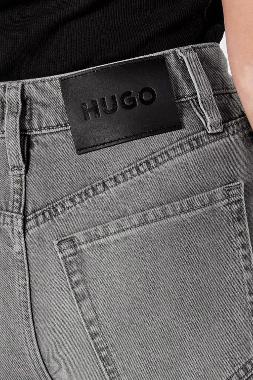 Детали: Женские серые джинсы Gilissi от Hugo by Hugo Boss (Хуго бай Хуго Босс). Пяти-карманная модель, пояс с петлями для ремня, нашивка с логотипом сзади на поясе, прямой крой, полная длина