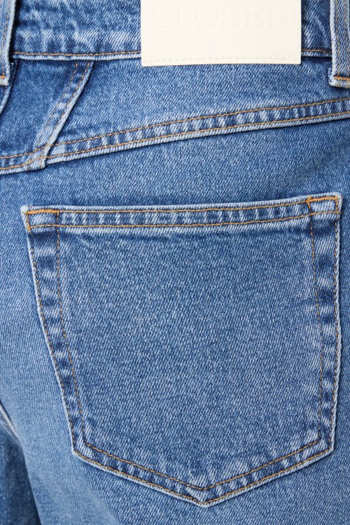 Детали: Женские синие джинсы из хлопка от Closed (Клоузед). Пяти-карманная модель, застежка на пуговицу и молнию, петли для ремня на поясе, дизайн с потертостями, патч-лого сзади. Замеры: обхват пояса: для размера 26 - 76 см, обхват бедер: для размера 26 - 92 см, длина штанины: для размера 26 - 90 см, длина по шаговому шву: для размера 26 - 67 см