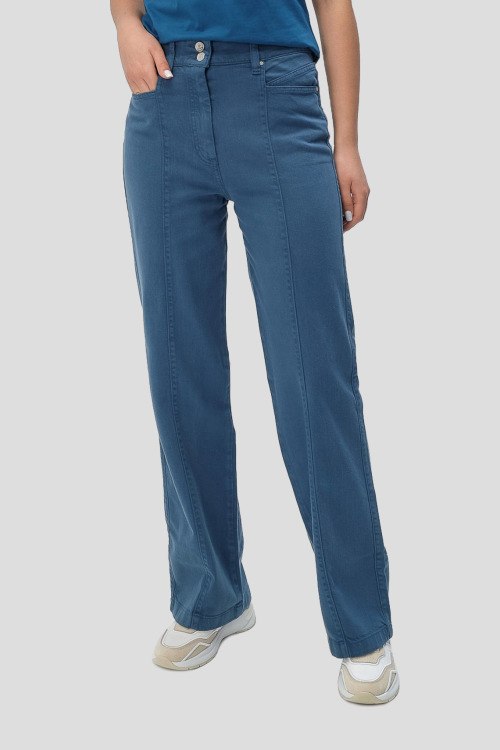 Детали: Женские синие прямые джинсы от Hugo Boss (Хуго Босс). Пяти-карманная модель, пояс с петлями для ремня, прямой крой, полная длина