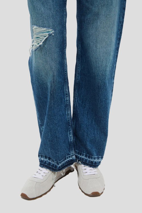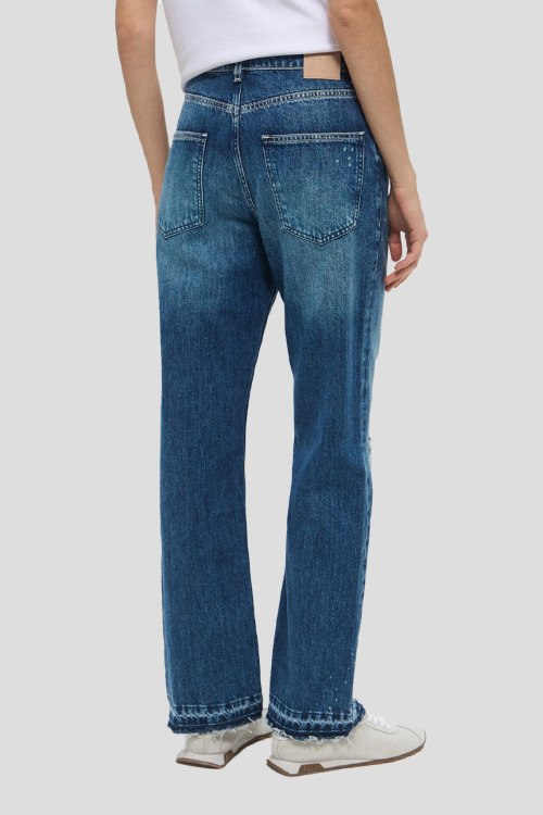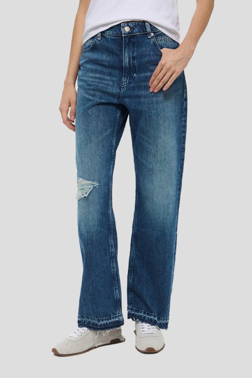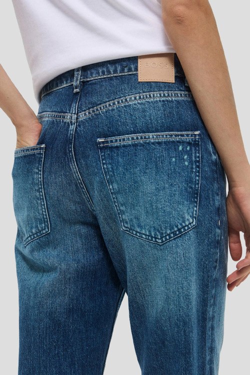 Детали: Женские синие джинсы C Ada Hr Bdh из хлопка от Hugo by Hugo Boss (Хуго бай Хуго Босс). Прямой крой, высокая посадка, застежка на молнию и пуговицу, пять карманов, петли в поясе для ремня, дизайн с потертостями, патч-лого