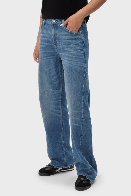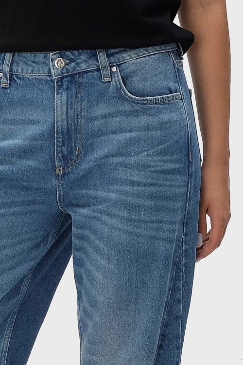 Детали: Женские светло-синие прямые джинсы от Hugo Boss (Хуго Босс). Пяти-карманная модель, пояс с петлями для ремня, прямой крой, полная длина