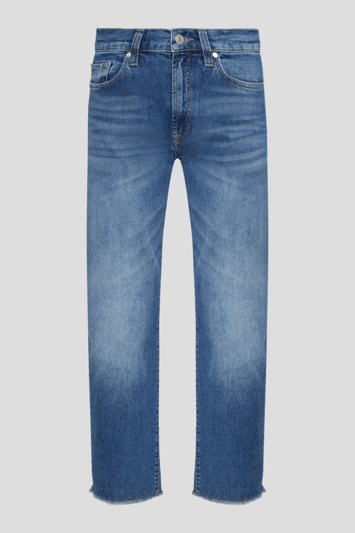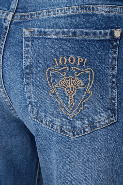 Детали: Женские синие джинсы Tapered Fit от Joop! (Йооп!). Пяти-карманная модель, дизайн с потертостями, пояс с петлями для ремня, нашивка с логотипом сзади на поясе, вышитый логотип на заднем кармане, необработанный нижний край, полная длина. Обхват пояса: для размера 26 - 68 см, обхват бедер: для размера 26 - 84 см, длина штанины: для размера 26 - 95 см, длина по шаговому шву: для размера 26 - 69 см