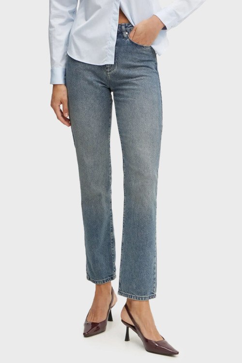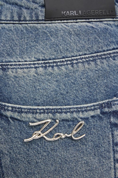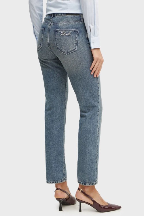Детали: Женские синие джинсы из хлопкового микса от Karl Lagerfeld (Карл Лагерфельд). Классическая длина, прямой силуэт, высокая посадка, застежка на молнию и пуговицу, пять карманов, петли в поясе для ремня, металлический логотип бренда