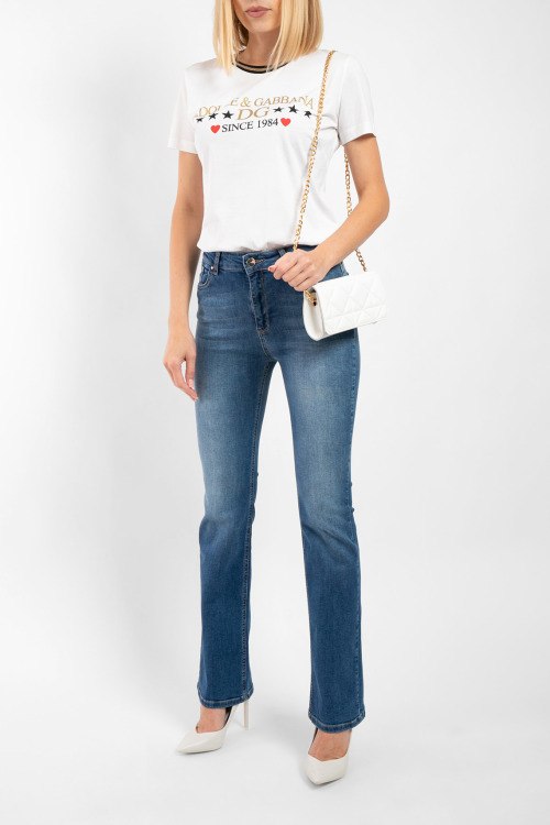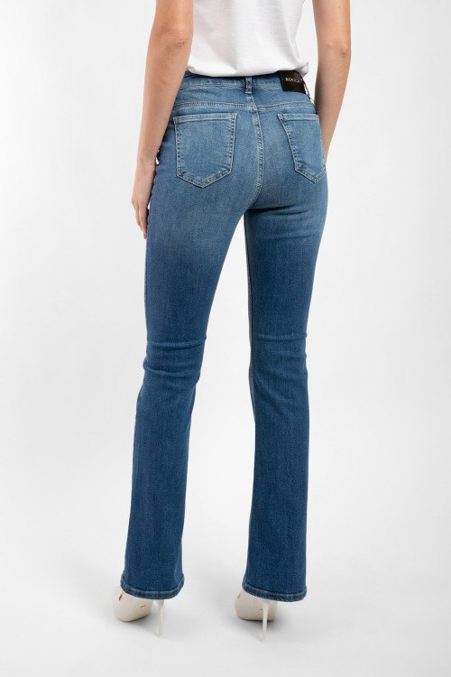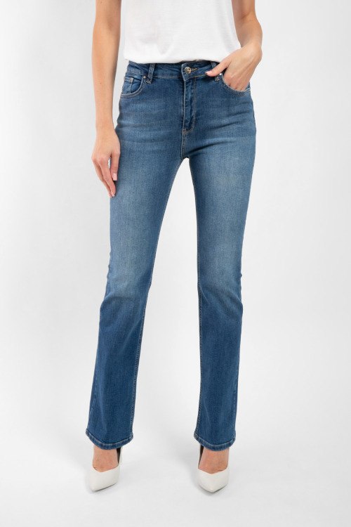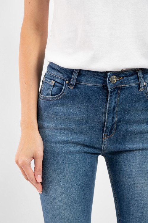 Детали: Женские темно-синие джинсы из хлопкового микса от Kocca (Кокка). Классическая длина, средняя посадка, застежка на молнию и пуговицу, пять карманов, петли в поясе для ремня, патч-лого