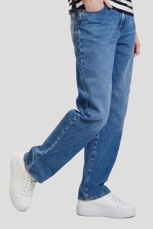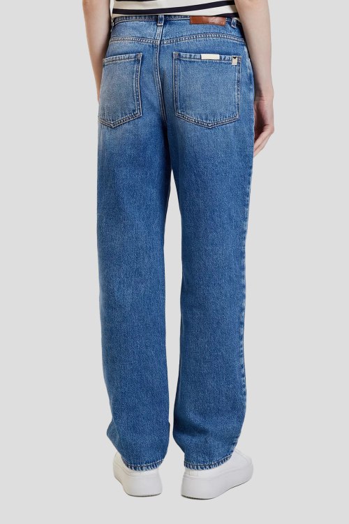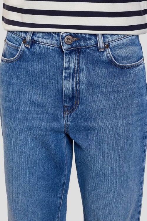 Детали: Женские синие джинсы из хлопка от Max Mara (Макс Мара). Классическая длина, высокая посадка, прямой крой, застежка на молнию и пуговицу, четыре кармана, петли в поясе для ремня