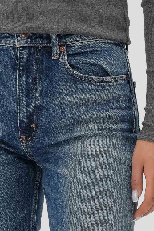 Детали: Женские синие джинсы от Polo Ralph Lauren (Поло Ральф Лорен). Пяти-карманная модель, дизайн с потертостями, пояс с петлями для ремня, нашивка с логотипом сзади на поясе, прямой крой, полная длина