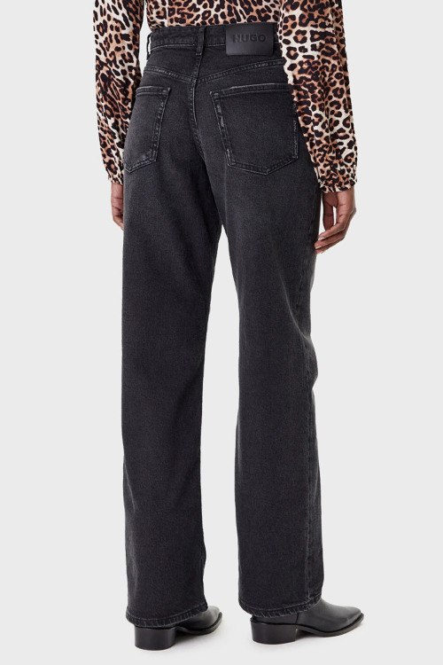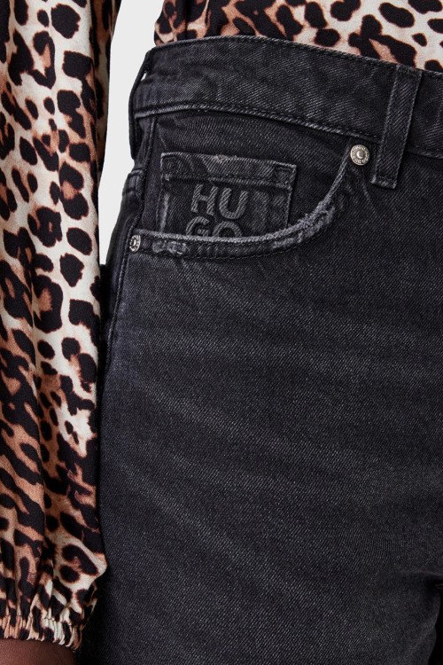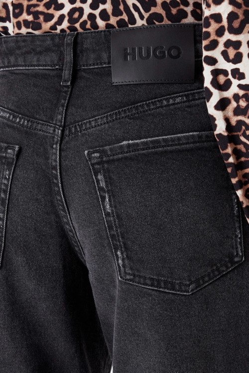 Детали: Женские темно-серые прямые джинсы от Hugo by Hugo Boss (Хуго бай Хуго Босс). Пяти-карманная модель, пояс с петлями для ремня, нашивка с логотипом сзади на поясе, прямой крой, полная длина
