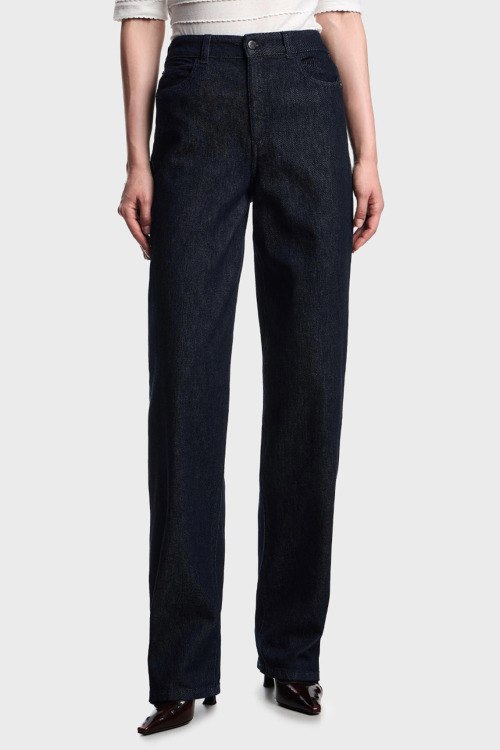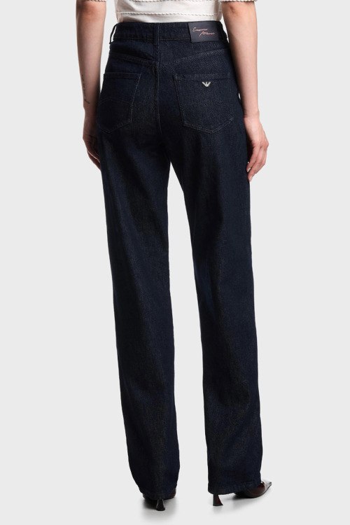 Детали: Женские темно-синие прямые джинсы от Emporio Armani (Эмпорио Армани). Пяти-карманная модель, пояс с петлями для ремня, нашивка с логотипом сзади на поясе, прямой крой, полная длина