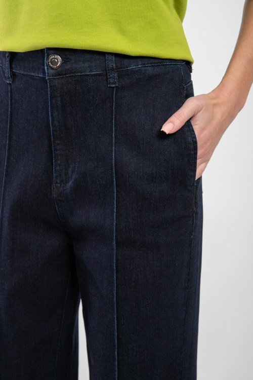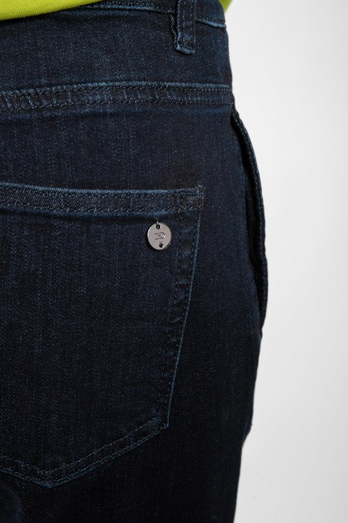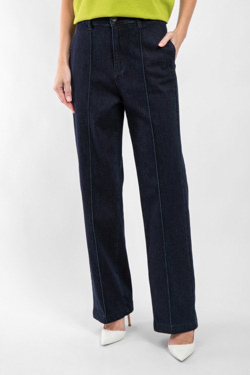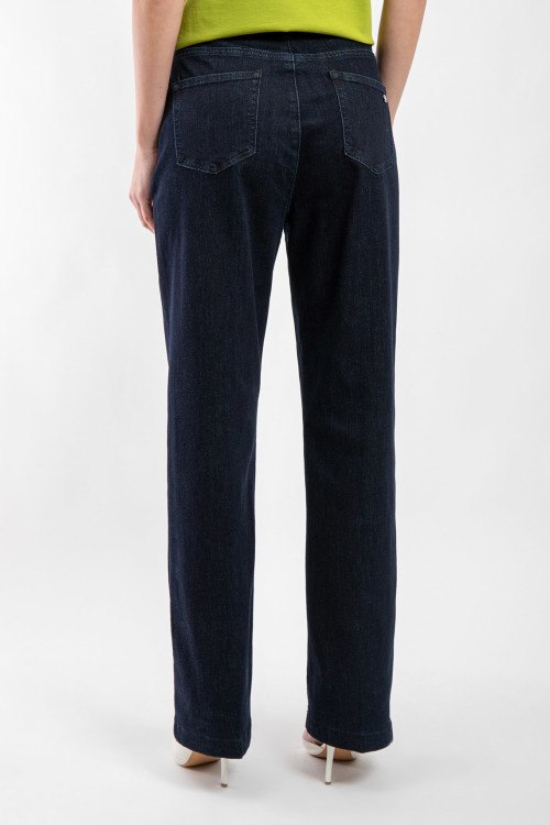 Женские темно-синие джинсы из хлопкового микса от Chiara Dalba (Кьяра Далба). Классическая длина, средняя посадка, застежка на молнию и пуговицу, пять карманов, петли в поясе для ремня. Замеры для размера 44: длина 112 см, ширина по талии: 38 см, ширина по бедрам: 46 см, высота сидения: 39 см, ширина штанины вверху: 30,5 см. Ткань тянется.
