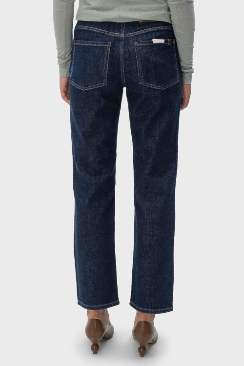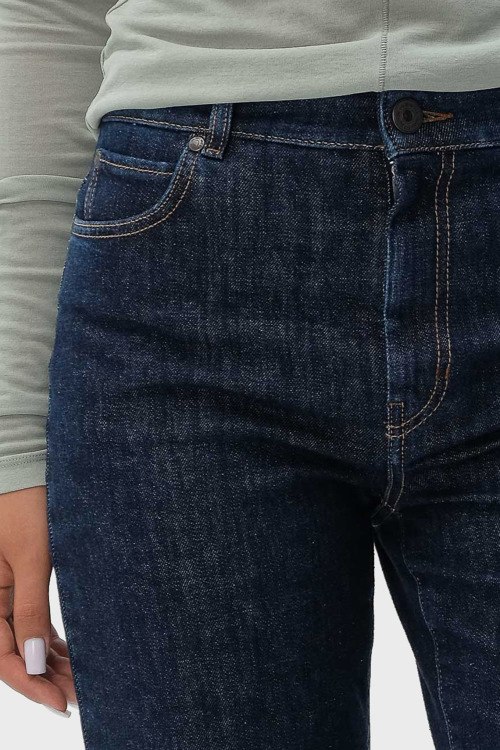 Детали: Женские темно-синие джинсы Loris от Max Mara Weekend (Макс Мара Викенд). Пяти-карманная модель, пояс с петлями для ремня, нашивка с логотипом сзади на поясе, прямой крой, укороченная длина