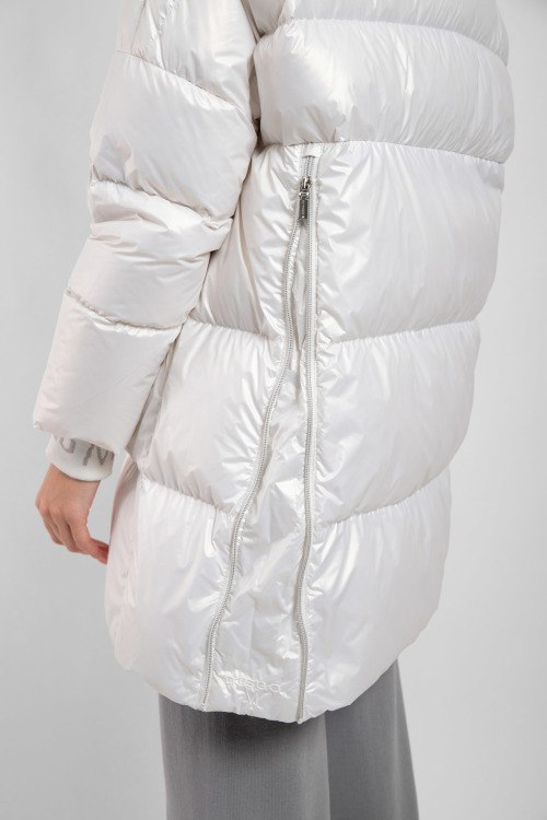 Детали: Женская перламутровая куртка из полиэстера от Diego M (Диего М). Стеганый дизайн, застежка на молнию, вшитый капюшон, прорезные карманы, по бокам функционирующие молнии, утеплитель из микса пуха и пера. трикотажная резинка на манжетах с логотипом. Измерения: длина изделия: 79 см, ширина по груди: 58 см, ширина по талии: 58 см, ширина по бёдрам: 62 см, длина рукава по внутреннему шву: 41 см, ширина рукава: 20 см, капюшон вшитый