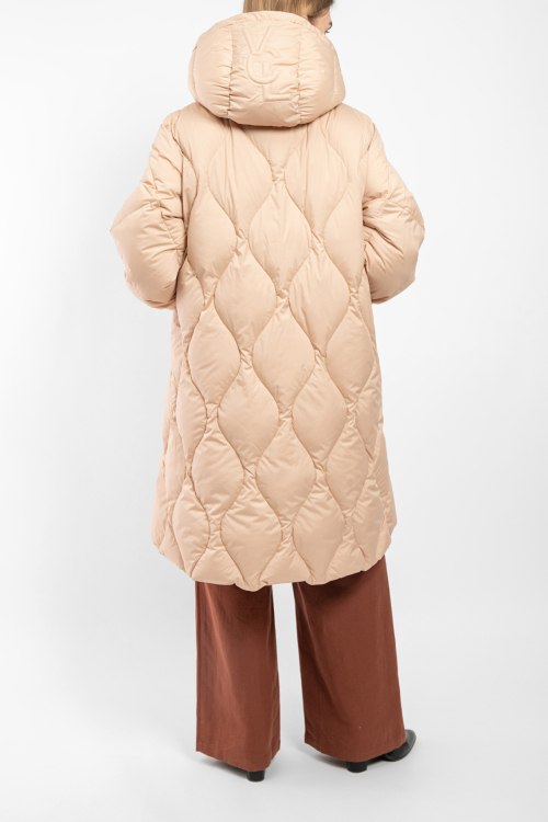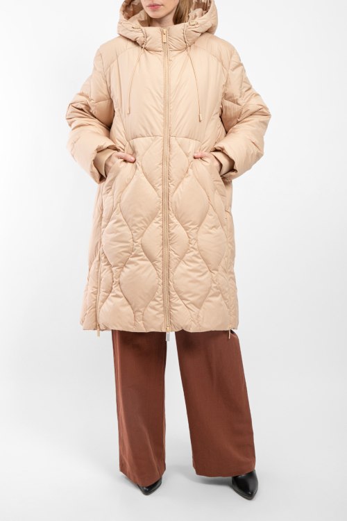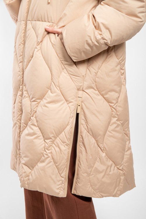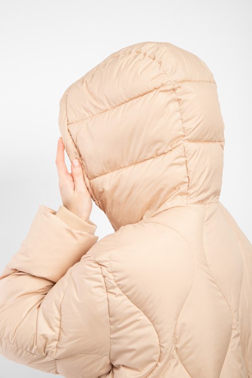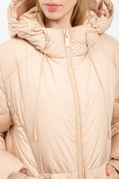 Женское бежевое пальто из полиэстера от Vicolo (Виколо). Стеганый дизайн, застежка на молнию, вшитый капюшон с кулиской, прорезные карманы, по бокам разрезы, застежка на молнию, модель утепленная миксом из пуха и пера. Замеры для размера L: Длина: 97 см, ширина по груди: 60 см, ширина по талии: 64 см, ширина по бедрам: 68 см, длина рукава по внутреннему шву: 50 см, ширина рукава: 22 см. Капюшон вшитый, по бокам изделия молнии.