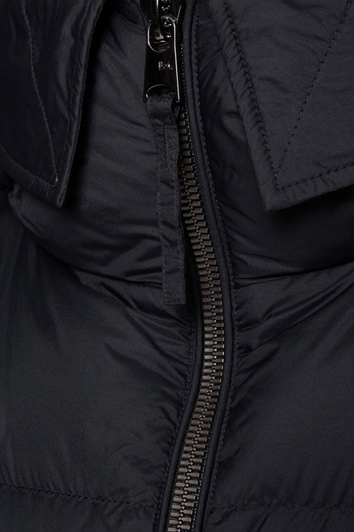 Детали: Женская черная куртка из полиамида от Beaumont (Бэмонт). Стеганная модель, прямой фасон, воротник-стойка, вшитый капюшон, два внешних кармана на молнии, один внутренний карман, застежка спереди на молнию, натуральный утеплитель. Замеры: длина рукава: длинный, для размера 36 - 62 см, обхват груди: для размера 36 - 116 см, обхват талии: для размера 36 - 116 см, длина изделия по среднему шву спинки от горловины: для размера 36 - 71 см