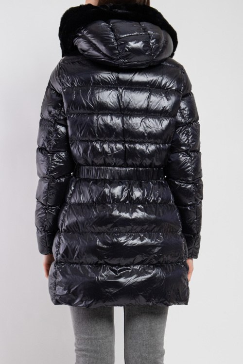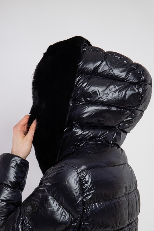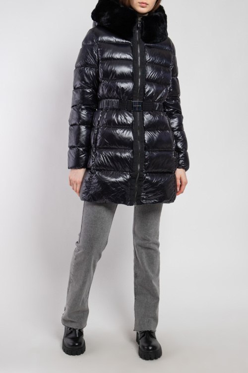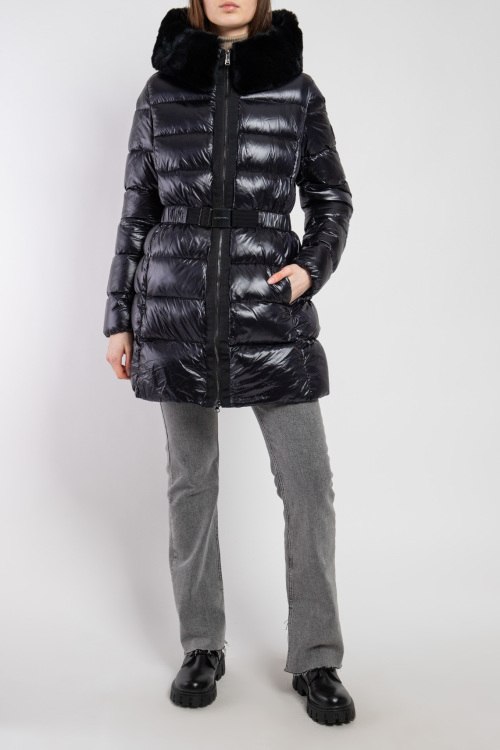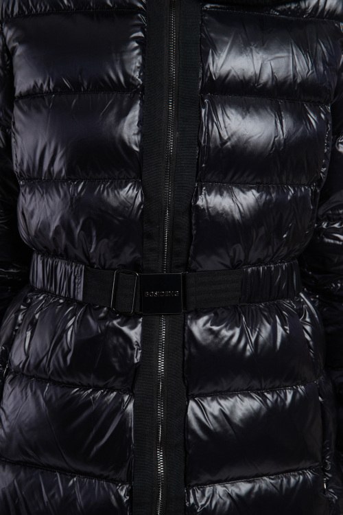 Женская черная куртка из нейлона от Bosideng (Босиден). Стеганый дизайн, высокий воротник-стойка, застежка на молнию, вшитый капюшон с меховой опушкой, эластичный пояс в тон изделия, прорезные боковые карманы, патч-лого на рукаве, модель утепленная миксом из пуха и пера. После специальной обработки изделия остаются «дышащими», непромокаемыми и эластичными. Они не деформируются после стирки, пух не «оплывает» и не вылезает из швов. И по весу они очень легкие. Длина куртки на размер XL (88 см) длина рукава 68 см.