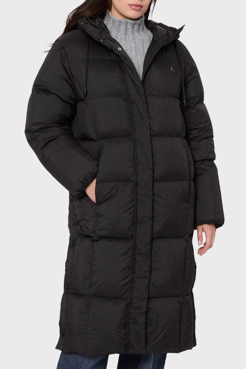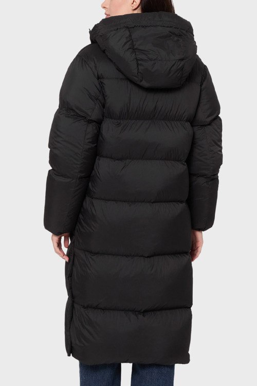 Детали: Женское черное пальто на пуху Fini от Hugo by Hugo Boss (Хуго бай Хуго Босс). Стеганый дизайн, высокий воротник, съемный капюшон, логотип на груди, боковые карманы, застежка на молнию и кнопки, длина-миди, наполнитель из микса пуха и пера
