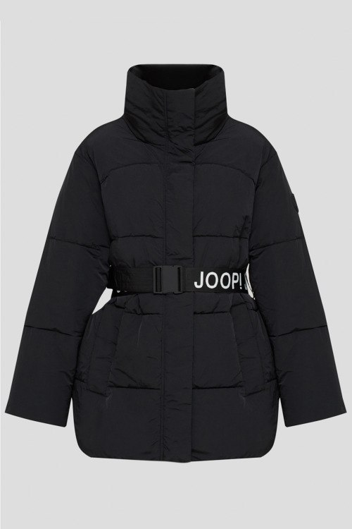Детали: Женская черная зимняя куртка Coralie от Joop! (Йооп!). Стеганый дизайн, высокий воротник, нашивка с логотипом на рукаве, в талии брендированный пояс, боковые карманы, застежка на молнию и кнопки, удлиненная длина. Длина рукава: длинный, для размера S - 58 см, обхват груди: для размера S - 114 см, обхват талии: для размера S - 114 см, длина изделия по среднему шву спинки от горловины: для размера S - 74 см