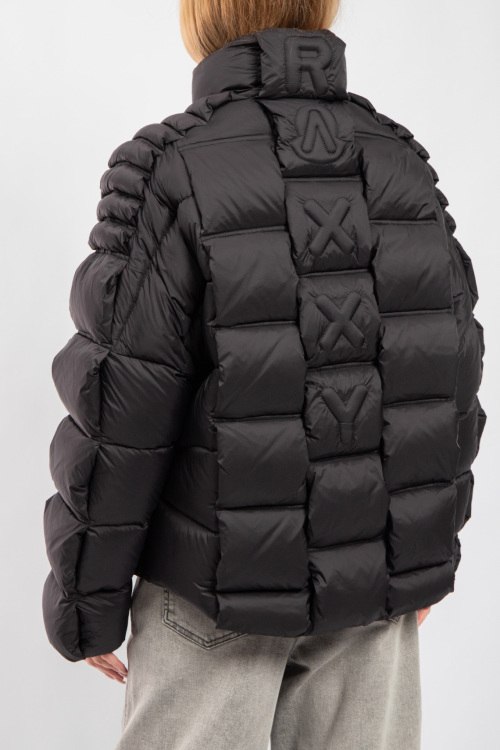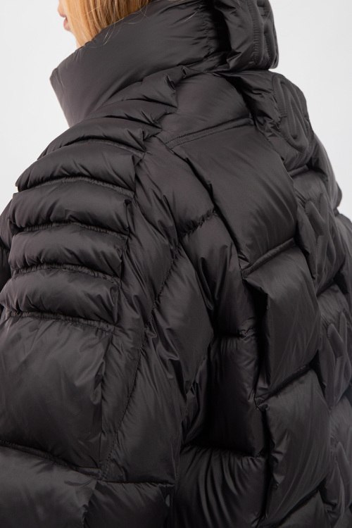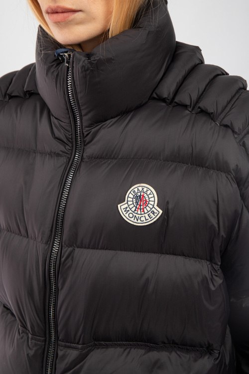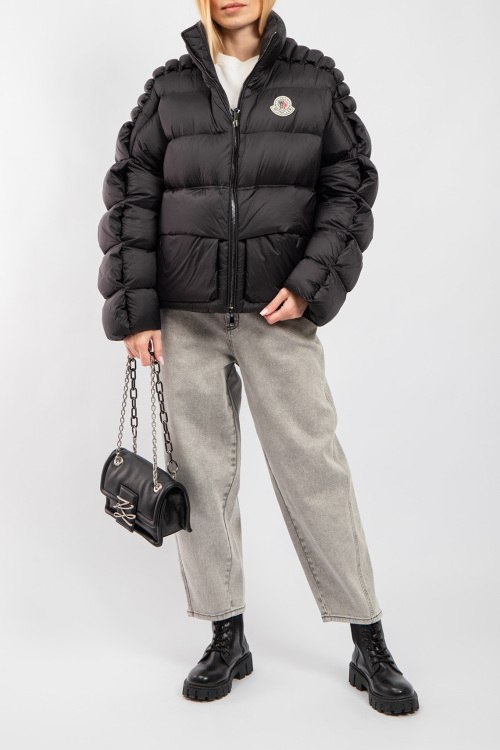 Детали: Женская черная куртка на пуху Moncler x Christopher Raxxy от Moncler (Монклер). Дутый материал, стеганый дизайн, нашивка с логотипом на груди, боковые карманы, застежка-молния, классическая длина, наполнитель из микса пуха и пера. Комплектация: фирменные коробка, кофр, подарочный пакет