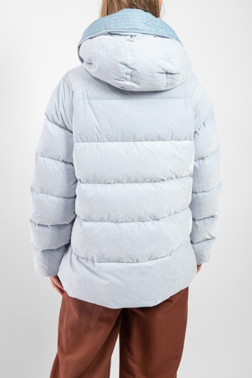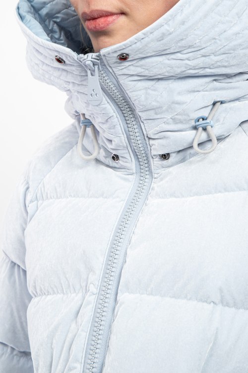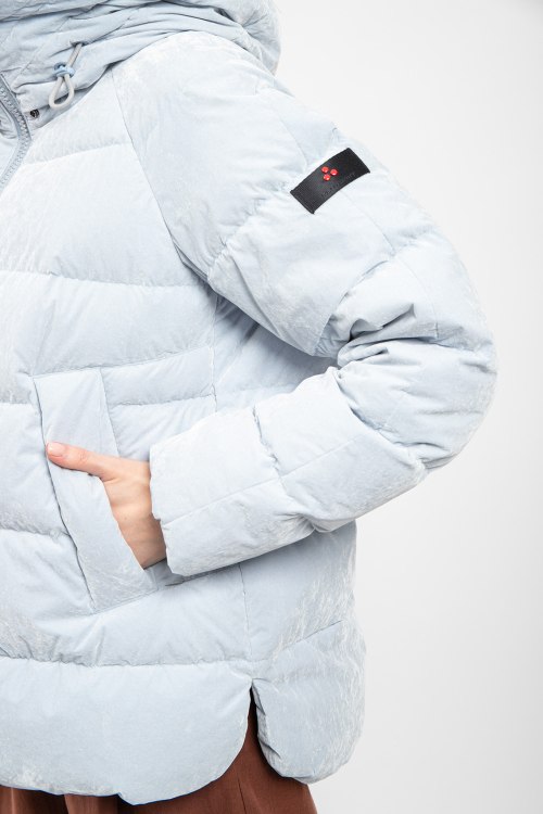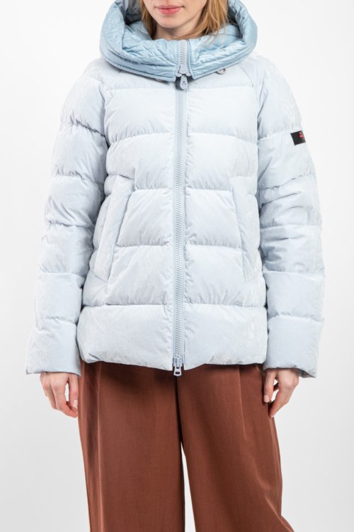 Детали: Женская голубая куртка из полиамида и вискозы от Peuterey (Пьютерей). Стеганый дизайн, вшитый капюшон, застежка на молнию, рукава-реглан, патч-лого, прорезные карманы, модель утепленная миксом из пуха и пера