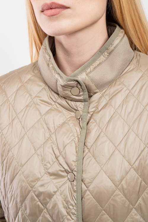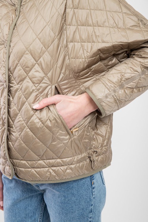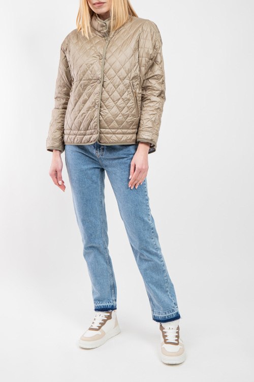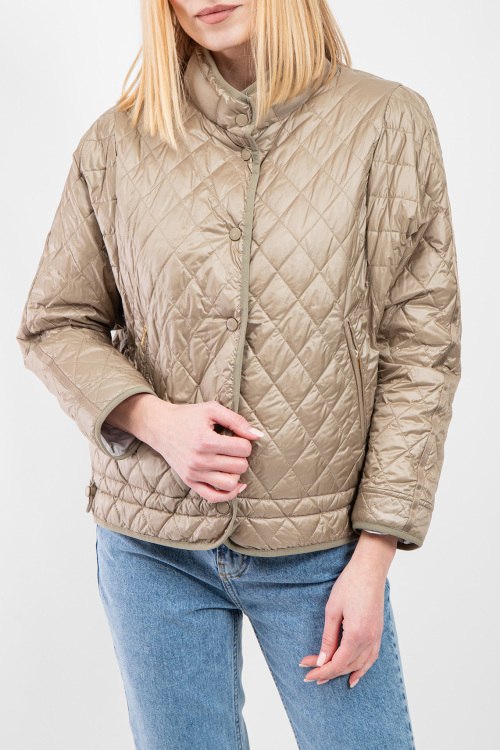 Женская двухсторонняя куртка из нейлона от Diego M (Диего М). Стеганый дизайн, воротник-стойка, застежка на кнопки, прорезные карманы, утяжка по низу изделия, модель утепленная миксом из пуха и пера.Замеры для размера 40: длина: 57 см, ширина по груди: 68 см, ширина по талии: 61,5 см, ширина рукава: 15,5 см.