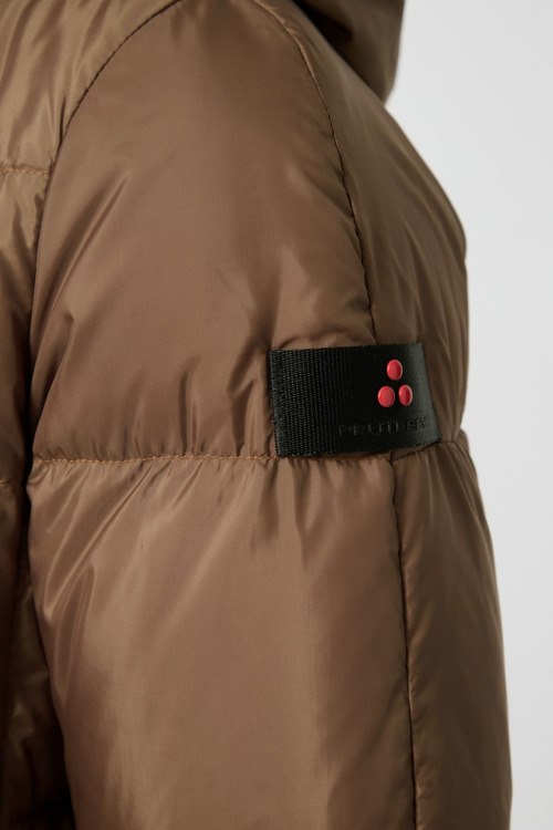 Детали: Женская коричневая куртка на пуху от Peuterey (Пьютерей). Стеганый дизайн, вшитый капюшон, нашивка с логотипом на рукаве, боковые карманы, застежка на молнию и кнопки, наполнитель из микса пуха и пера. Длина рукава: длинный, для размера 38 - 60 см, обхват груди: для размера 38 - 96 см, обхват талии: для размера 38 - 100 см, длина изделия по среднему шву спинки от горловины: для размера 38 - 57 см