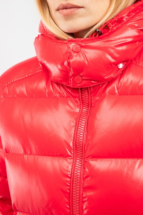 Детали: Женская красная куртка на пуху со съемным капюшоном Maya от Moncler (Монклер). Стеганый дизайн, высокий воротник, съемный капюшон, карман с логотипом на рукаве, боковые карманы на молнии, застежка-молния, регулируемые манжеты, классическая длина, наполнитель из микса пуха и пера. Комплектация: фирменные коробка, кофр, подарочный пакет