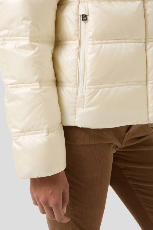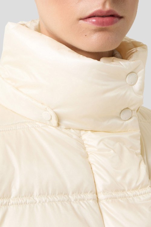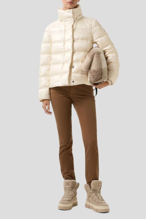 Детали: Женская куртка на пуху молочного оттенка Leslie от Bogner (Богнер). Стеганый дизайн, высокий воротник, нашивка с логотипом на рукаве, боковые карманы на молнии, застежка на молнию и кнопки, пуховый наполнитель, классическая длина