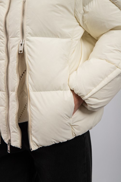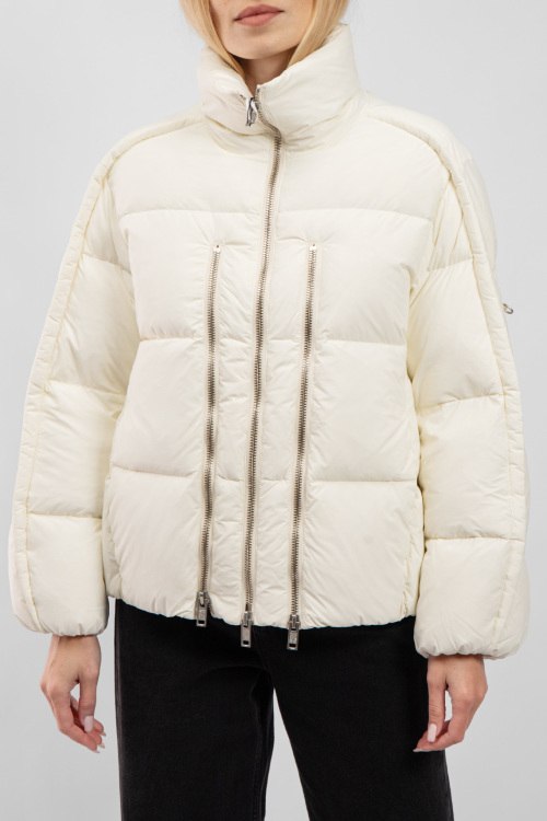 Детали: Женская кремовая куртка на пуху Genius x Willow Smith Jayel от Moncler (Монклер). Стеганый дизайн, высокий воротник, нашивка с логотипом на рукаве, боковые карманы, застежка-молния, плюс две функциональные молнии спереди, классическая длина, наполнитель из микса пуха и пера. Комплектация: фирменные коробка, кофр, подарочный пакет