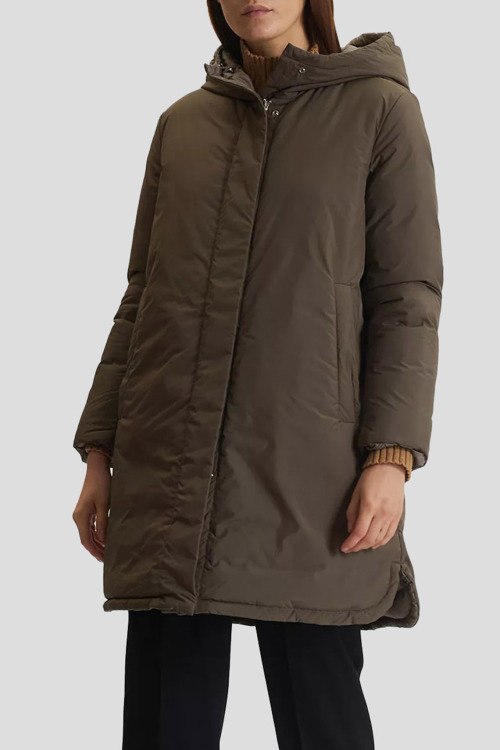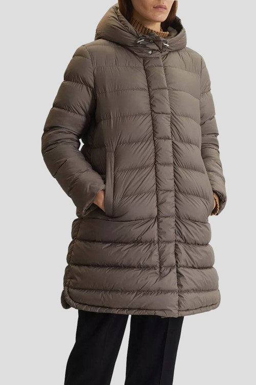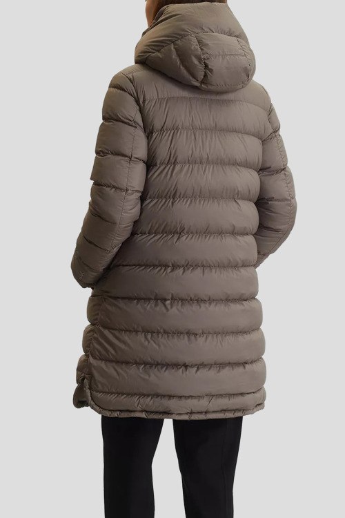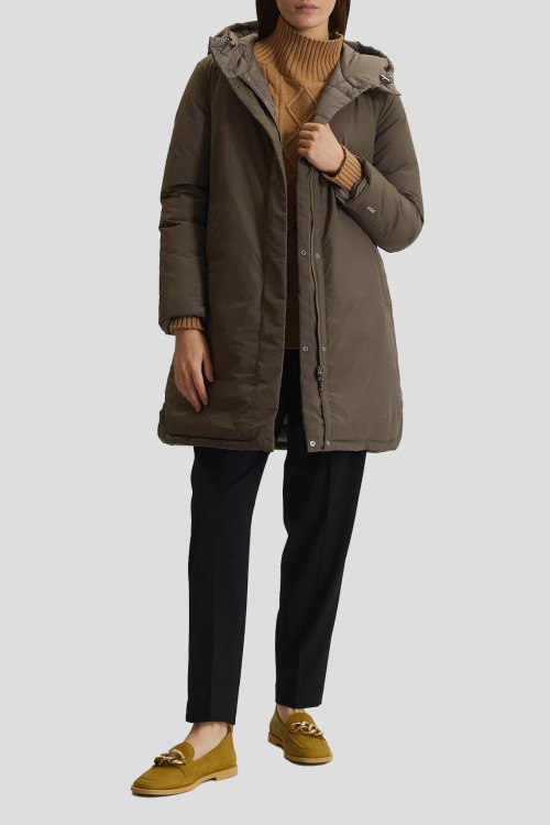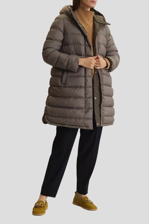 Детали: Женская серая двусторонняя куртка на пуху от Add (Эдд). Гладкая и стеганая сторона, вшитый капюшон, боковые карманы, застежка на молнию и кнопки, удлиненная длина, наполнитель из микса пуха и пера