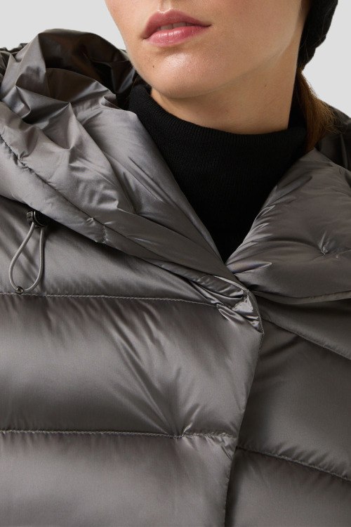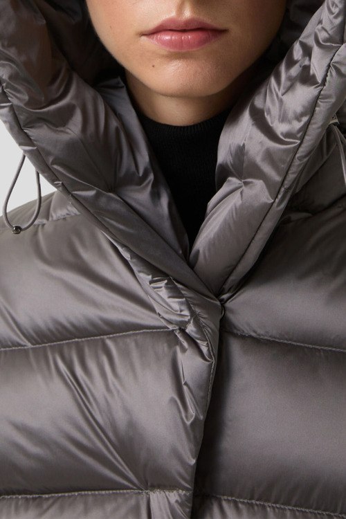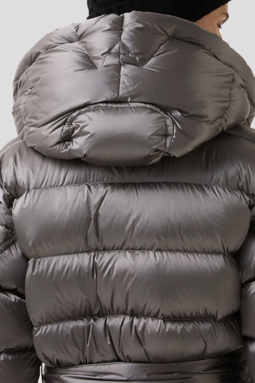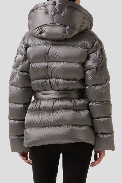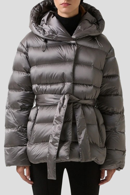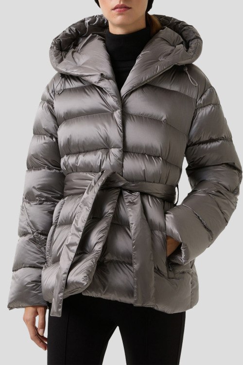 Детали: Женская серая куртка на пуху Laurie от Bogner (Богнер). Стеганый дизайн, dibnsq rfg.ijy, нашивка с логотипом на рукаве, боковые карманы на молнии, застежка на кнопки, в талии с поясом, пуховый наполнитель, удлиненная длина
