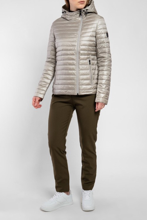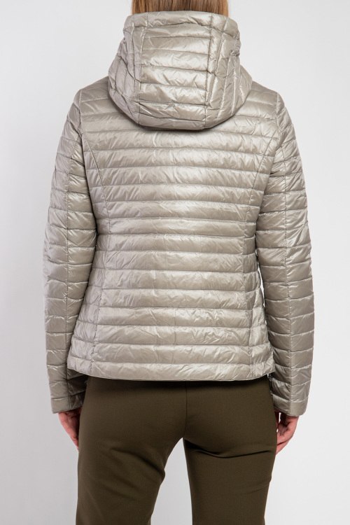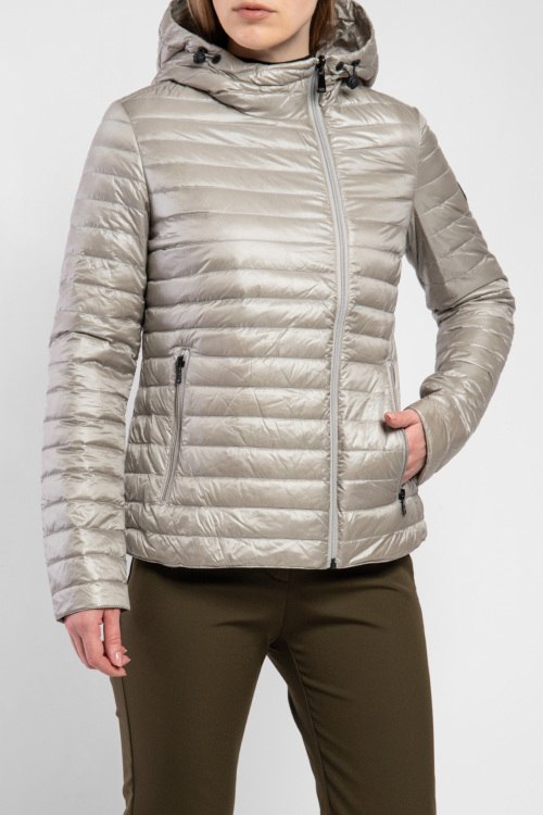 Женская серая куртка из нейлона от Bosideng (Босиден). Стеганый дизайн, двухсторонняя модель, высокий воротник-стойка, застежка на молнию, вшитый капюшон, боковые карман на молнии, патч-лого на рукаве. После специальной обработки изделия остаются «дышащими», непромокаемыми и эластичными. Они не деформируются после стирки, пух не «оплывает» и не вылезает из швов. И по весу они очень легкие.