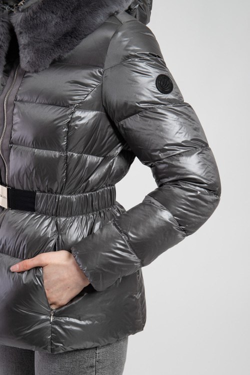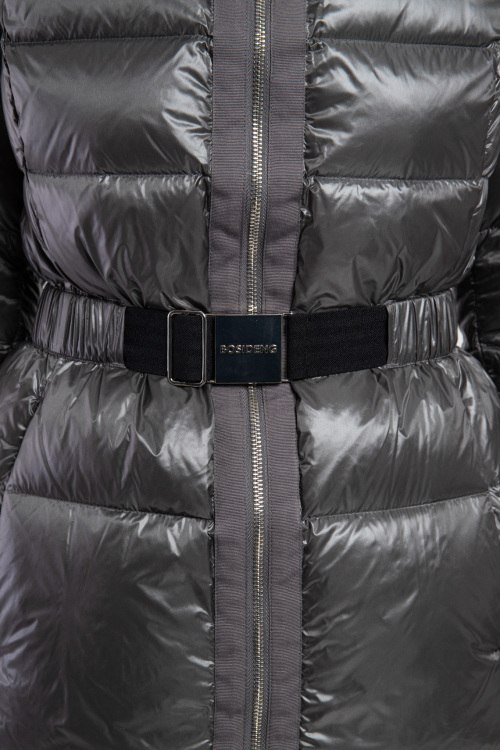 Женская серая куртка из нейлона от Bosideng (Босиден). Стеганый дизайн, высокий воротник-стойка, застежка на молнию, вшитый капюшон с меховой опушкой, эластичный пояс в тон изделия, прорезные боковые карманы, патч-лого на рукаве, модель утепленная миксом из пуха и пера. После специальной обработки изделия остаются «дышащими», непромокаемыми и эластичными. Они не деформируются после стирки, пух не «оплывает» и не вылезает из швов. И по весу они очень легкие. На размер S длина куртки (69 см) длина рукава (64 см). На размер L длина куртки (73 см), длина рукава (68 см), На размер XL длина куртки (75 см), длина рукава (69 см).