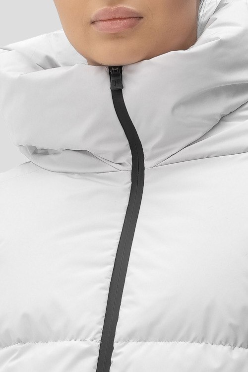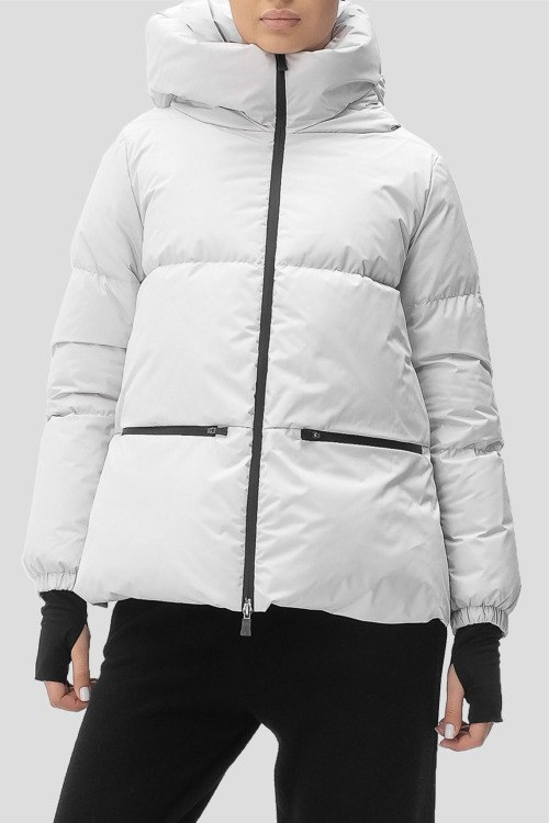 Детали: Женская светло-серая куртка на пуху от Herno (Эрно). Стеганый дизайн, вшитый капюшон, высокий воротник, передние карманы на молнии, застежка-молния, эластичные манжеты с вырезом для большого пальца, классическая длина, наполнитель из микса пуха и пера