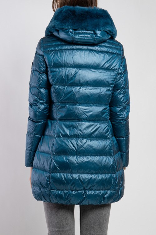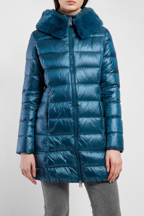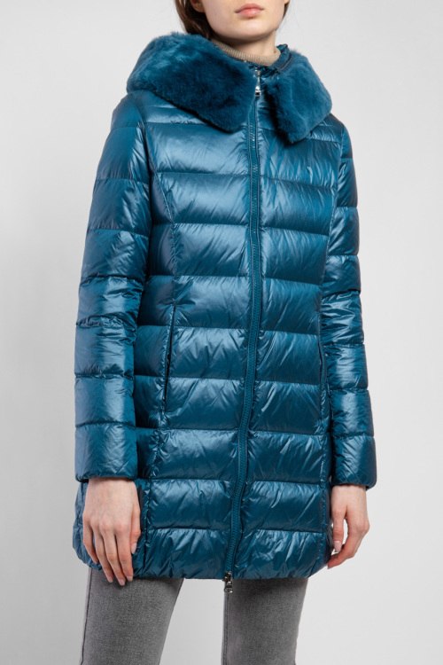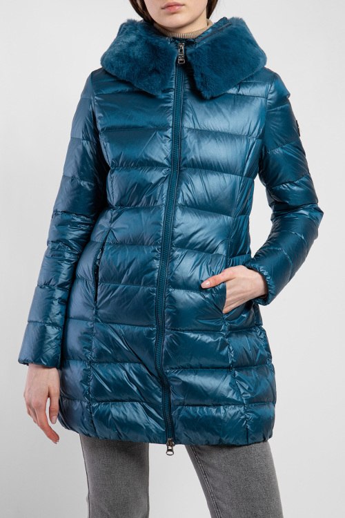 Женская куртка цвета морской волны из нейлона от Bosideng (Босиден). Стеганый дизайн, приталенный силуэт, высокий воротник-стойка, застежка на молнию, вшитый капюшон со съемной меховой отделкой, патч-лого на рукаве, модель утепленная миксом из пуха и пера. После специальной обработки изделия остаются «дышащими», непромокаемыми и эластичными. Они не деформируются после стирки, пух не «оплывает» и не вылезает из швов. И по весу они очень легкие.